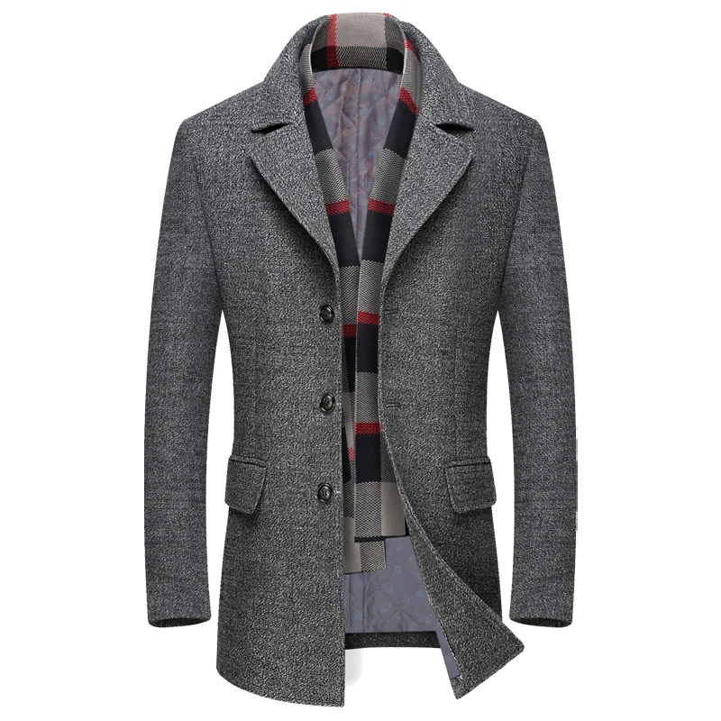 Mantmar - Langer Mantel Herren Wollmantel Winddicht Gefüttert Mit Stehkragen
