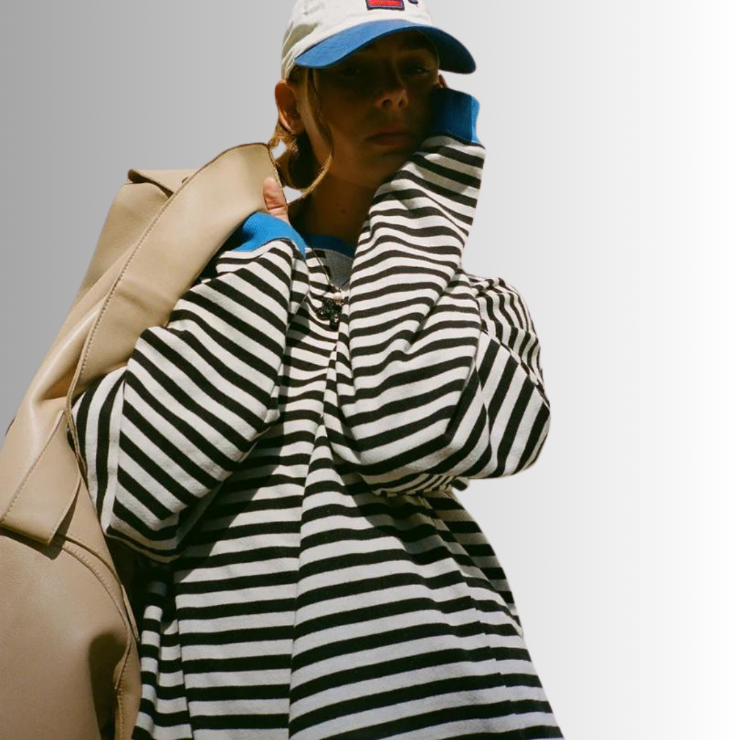 Unser beliebtes Maya Sweatshirt ist die perfekte Kombination aus Komfort und lässigem Chic. Entworfen für diejenigen, die sowohl Entspannung als auch Stil schätzen, bietet dieses Modell einen lockeren Schnitt und klassische Streifen, die deinen Alltagslook aufwerten. Ob beim Entspannen oder beim Ausgehen mit Freunden, dieses Sweatshirt sorgt dafür, dass du dich bequem und gleichzeitig mühelos modisch fühlst.