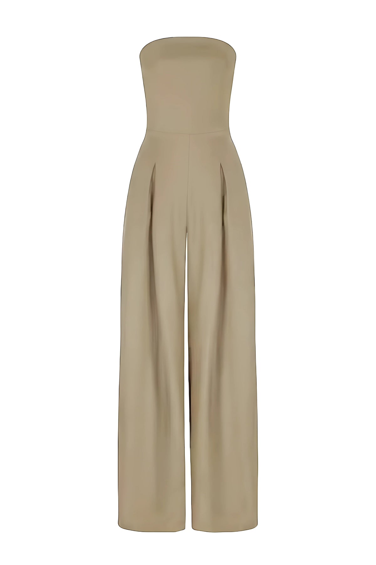 Schmeichelhaftes trägerloses GestaltungDer trägerlose Schnitt betont Ihre Schultern und Ihren Ausschnitt und sorgt für einen mühelos eleganten Stil. Der Jumpsuit verrutscht nicht und bietet den ganzen Tag oder Abend über Komfort und Selbstvertrauen. Perfekt für formelle Veranstaltungen und stilvolle Abende.