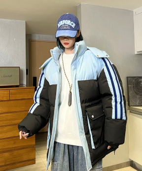 Die Puff Jacket für Männer und Frauen ist eine Jacke, die sowohl Funktionalität als auch Stil vereint. Sie wurde für alle entwickelt, die sowohl modisch als auch praktisch unterwegs sein möchten. Der auffällige Farbblockstil in Blau, Weiß und Schwarz sorgt für einen modernen und urbanen Look, der in jeder Stadtumgebung hervortritt.