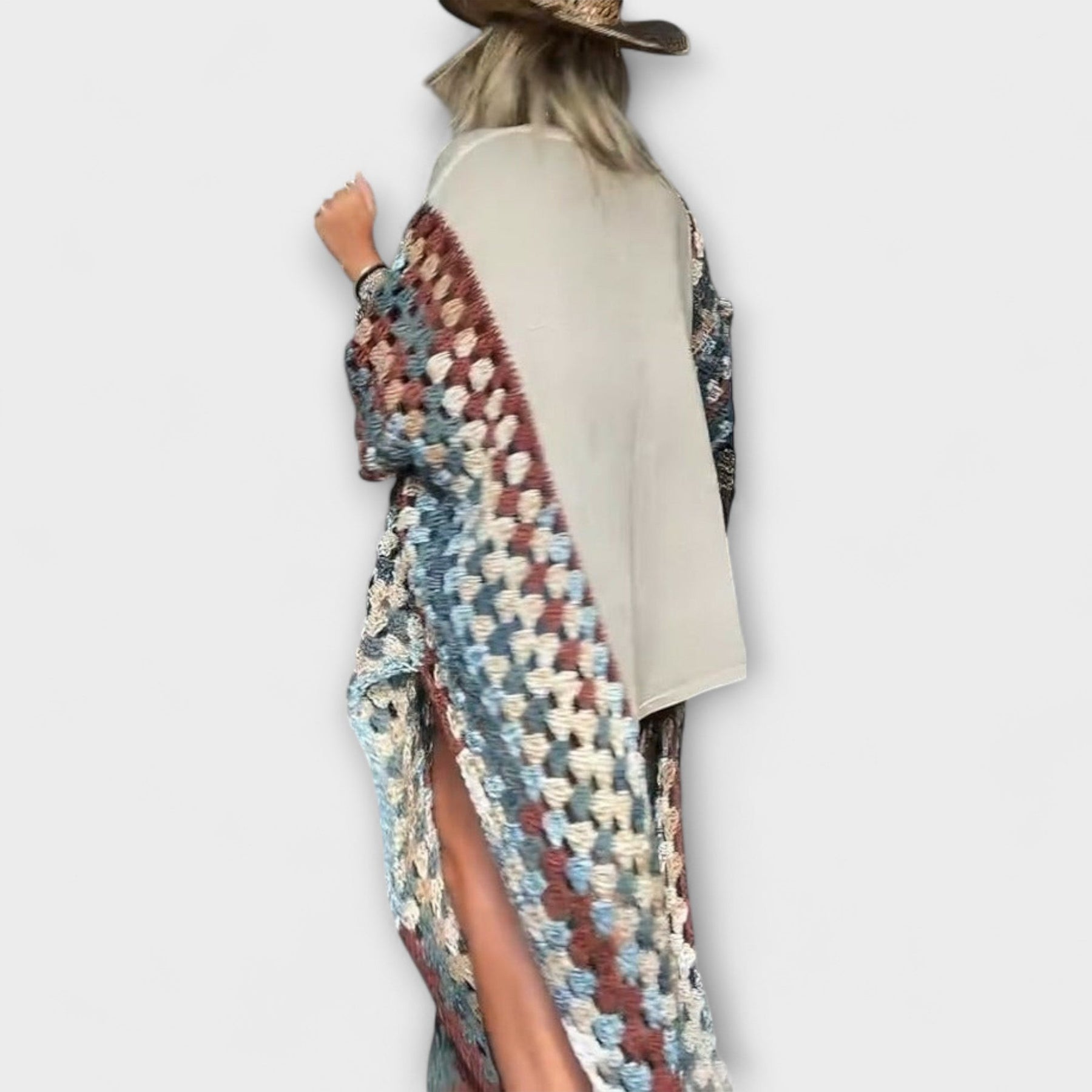 - Kreatives Ärmel-Design: Lange innere Häkelärmel verleihen unerwartetes Volumen und Bewegung.