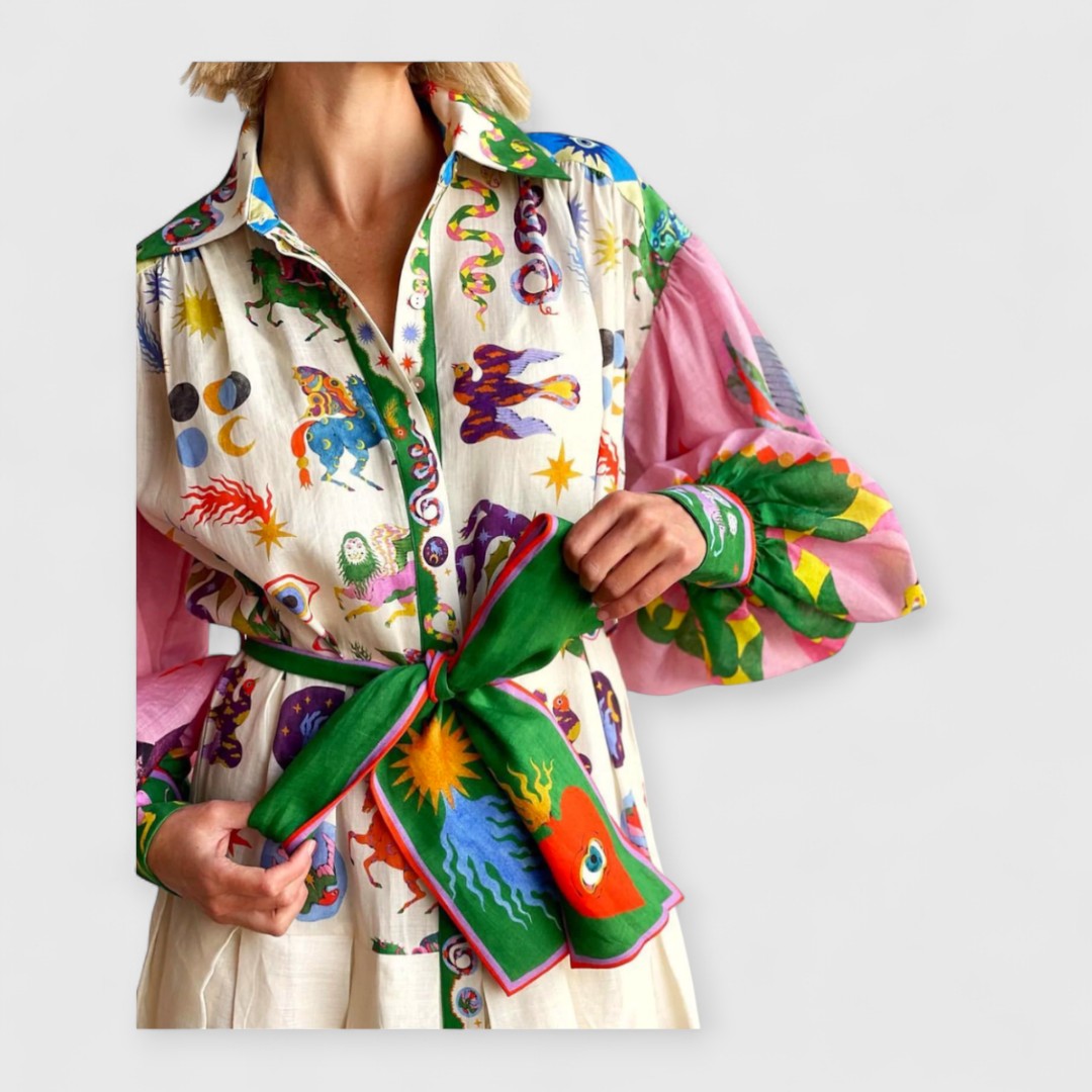 Unser beliebtes Nele Kostüm-Set bringt vivid patterns und bold design zusammen – perfekt für jede Party oder einfach ’nen frechen Alltags-Look. Es steckt voller Lebensfreude und lässt dich sofort strahlen.
