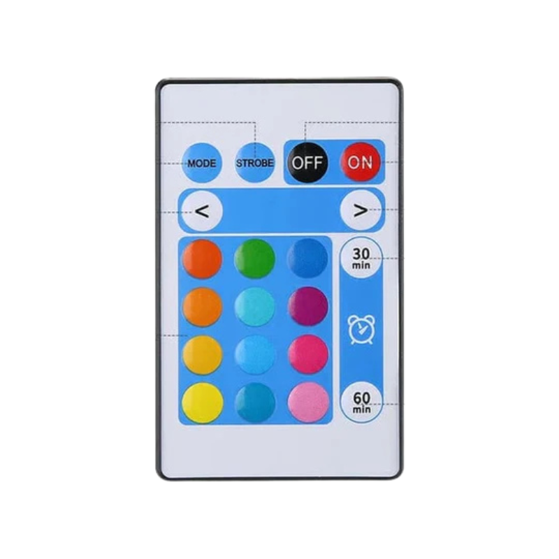 - Fernbedienung für Helligkeit, Farbauswahl und Timer-Einstellungen