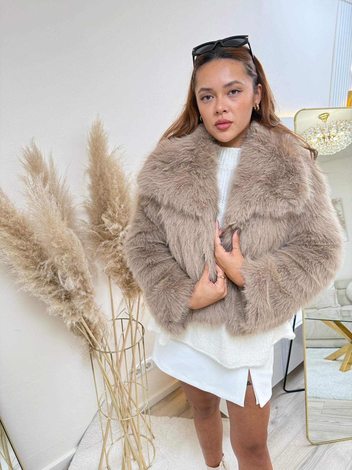 Der klassische Reverskragen verleiht der Pelzjacke eine elegante Note und macht sie zu einem zeitlosen Mode-Klassiker. -