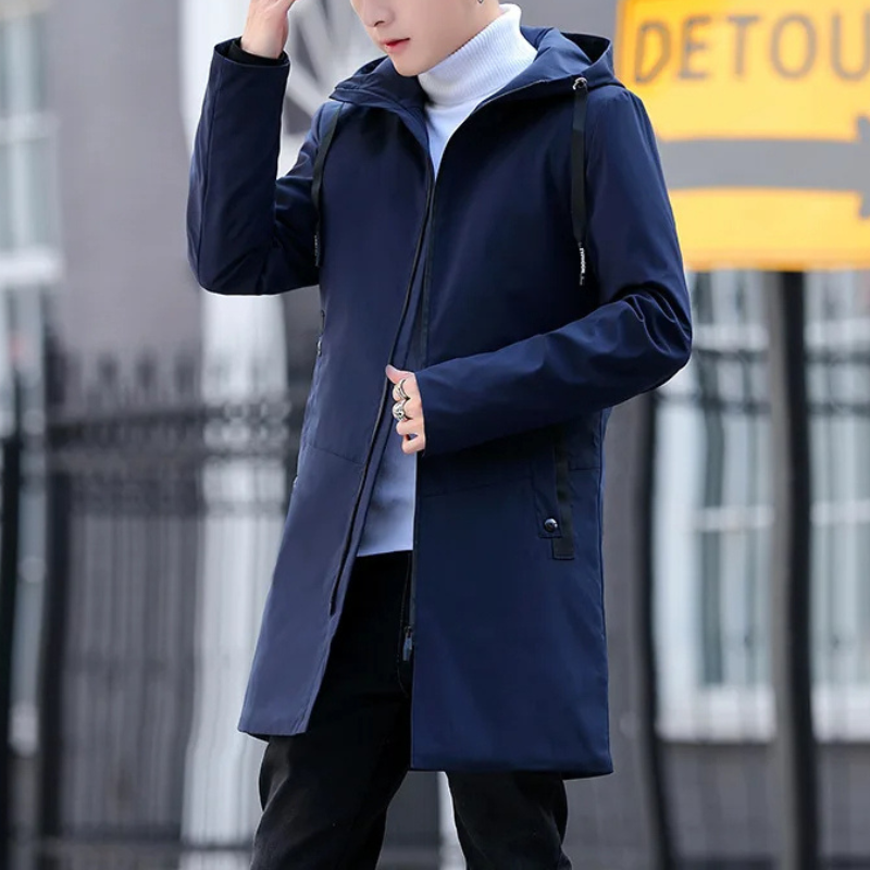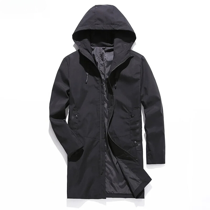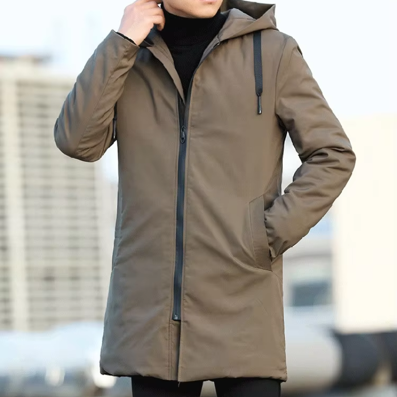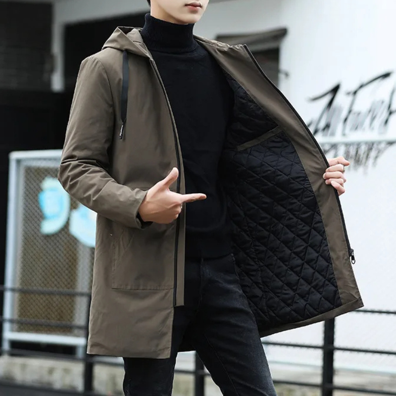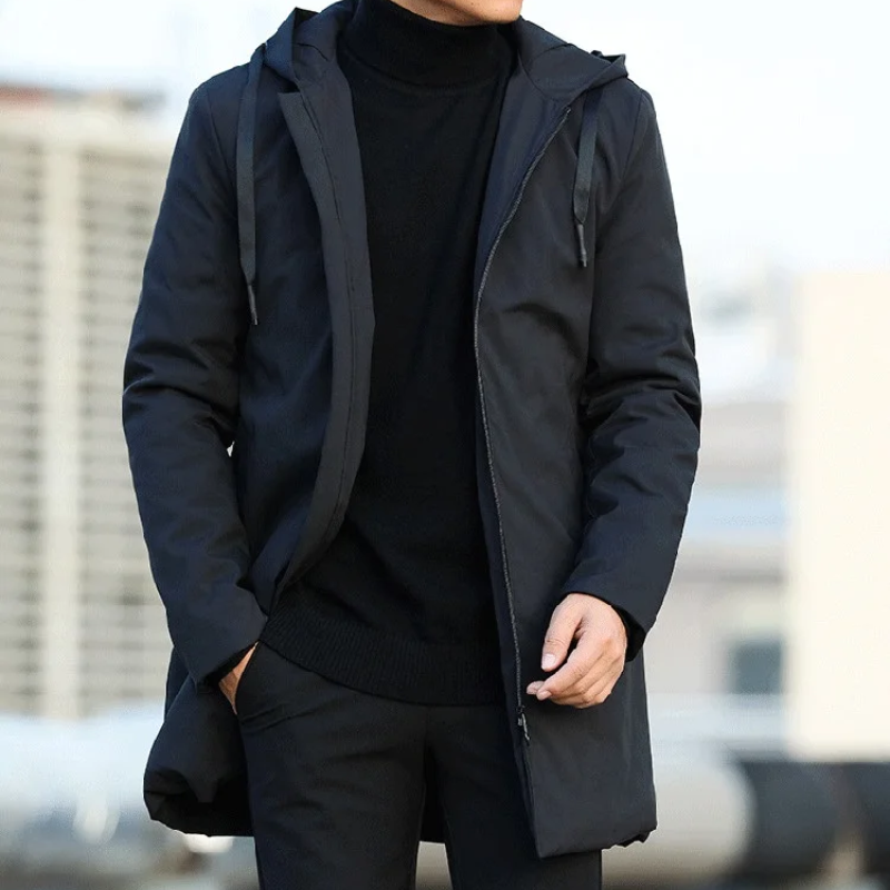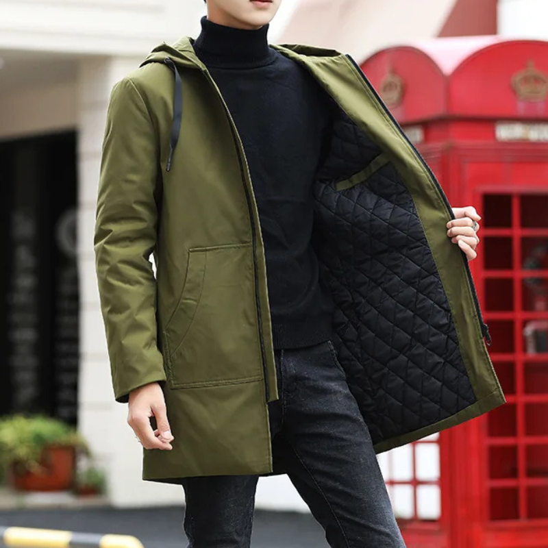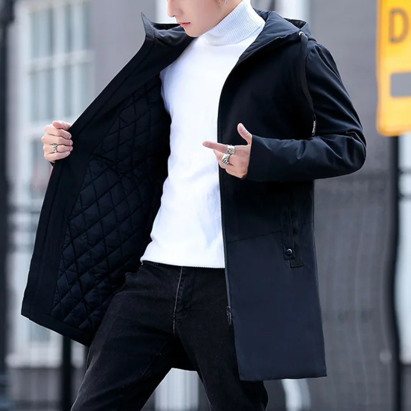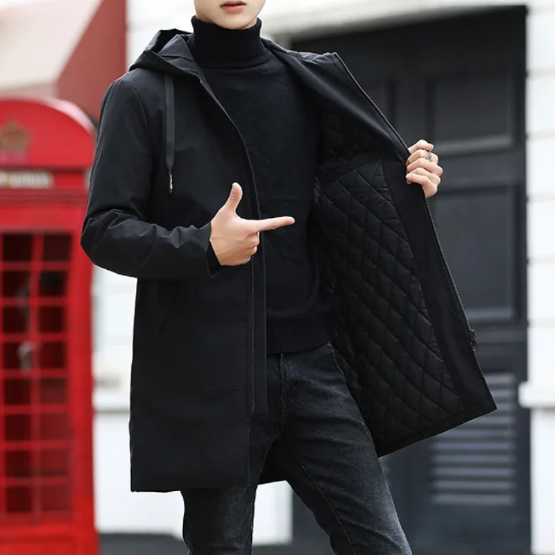 Polstox - Langer Wintermantel Herren – Leichter Steppmantel mit Kapuze und Futter