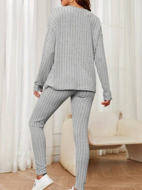 Entdecken Sie das ultimative Lounge-Set, das Komfort und Stil auf höchstem Niveau vereint. Dieses zweiteilige Set besteht aus einer elegant gerippten, locker sitzenden Oberteil und passgenauen Leggings. Mit einer harmonischen Mischung aus Stil und Funktionalität ist es ideal für entspannte Tage oder lässige Ausflüge.