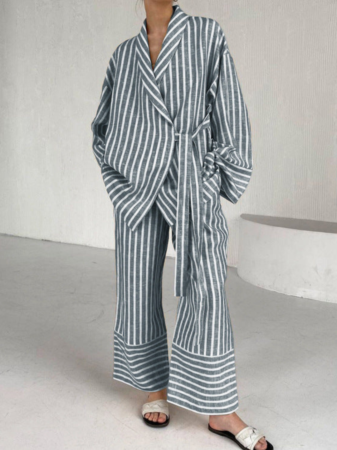 Erleben Sie das RITA - ZWEITEILIGE SET MIT STREIFEN von Fadenburg, das moderne Eleganz mit erstklassigem Komfort verbindet. Ideal für entspannte Zuhause-Stunden oder selbstbewusste Auftritte, dieses Set wird schnell zu Ihrem neuen Lieblingsoutfit. Die stilvollen Streifen verleihen jedem Look eine zeitlose Eleganz.