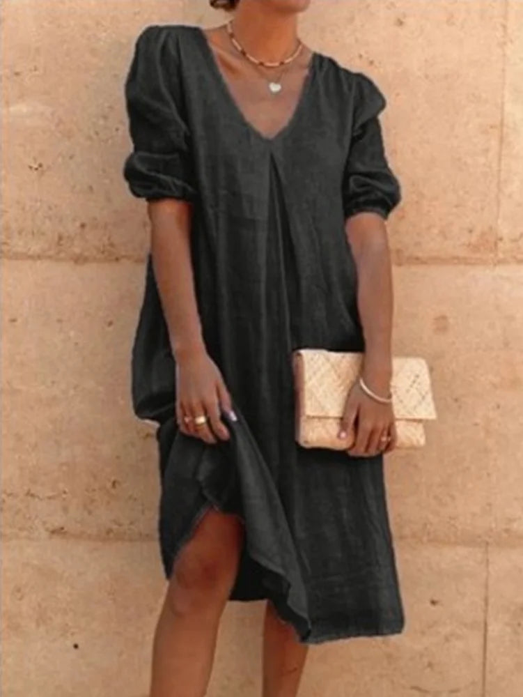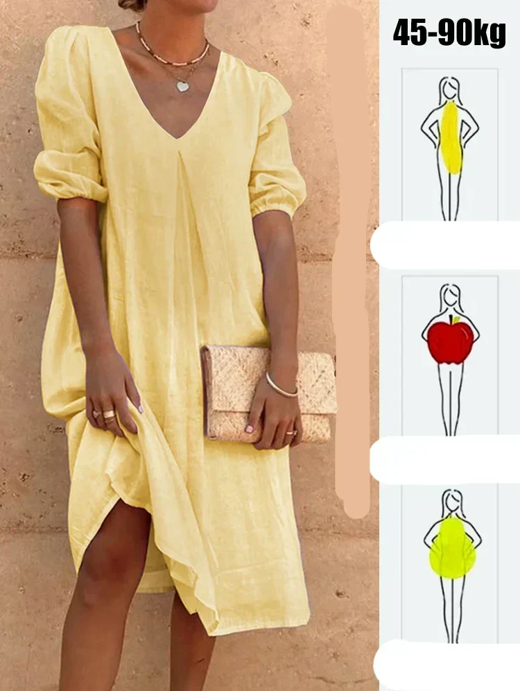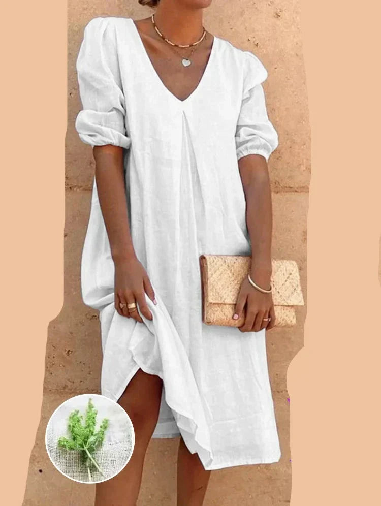 Hochwertige Materialien: Hergestellt aus einer hochwertigen Leinen-Baumwoll-Mischung, bietet dieses Kleid optimale Atmungsaktivität und Tragekomfort. Ideal für warme Tage, ohne auf Stil verzichten zu müssen.