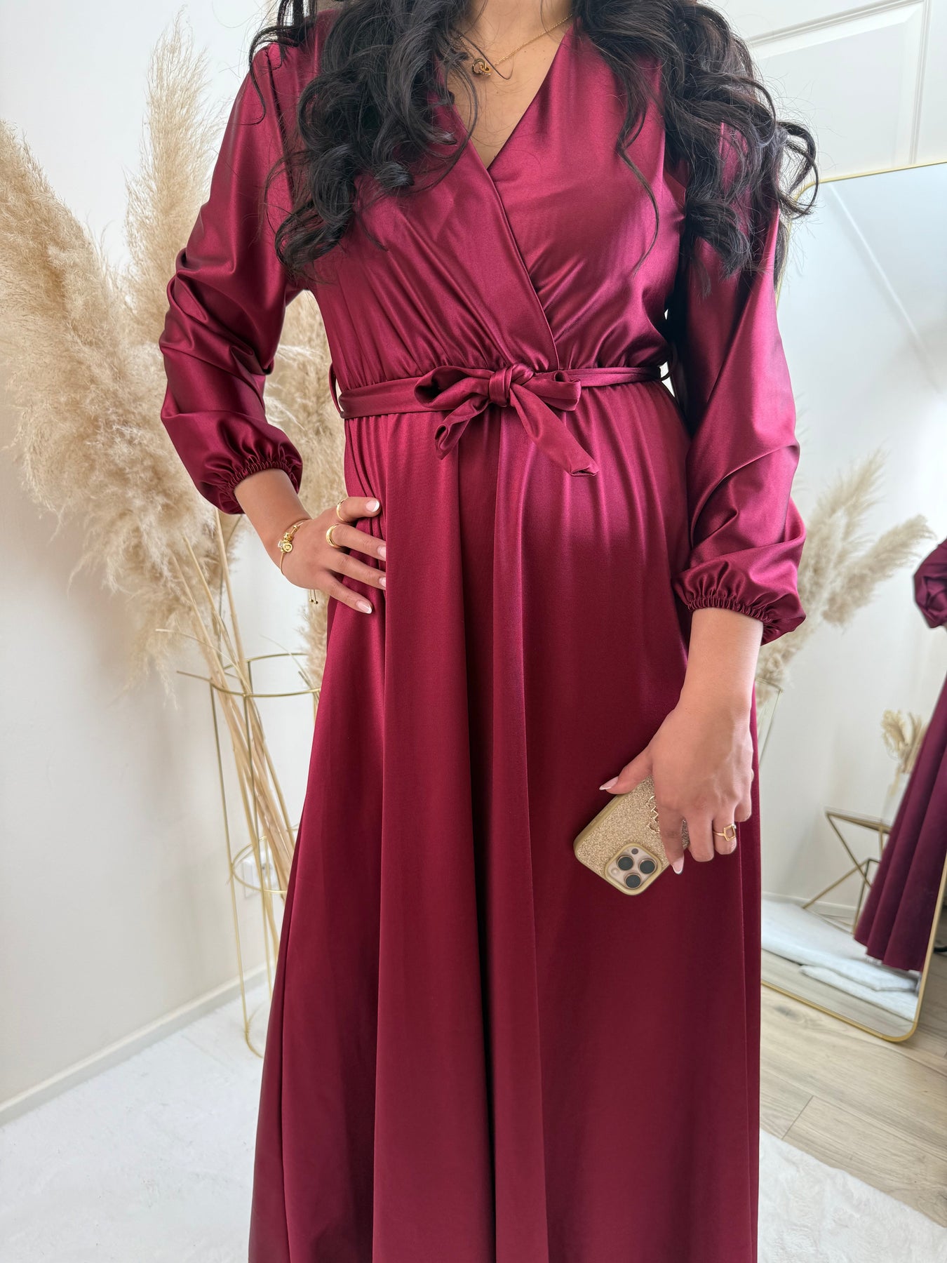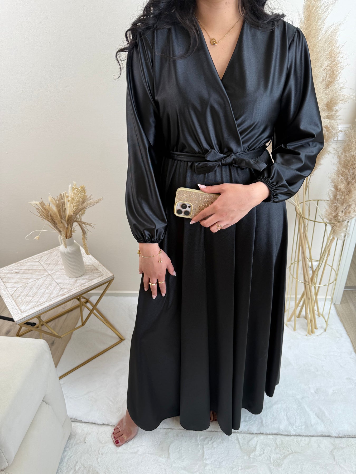 Satin Kleid mit Bindegürtel – Eleganz in Perfektion