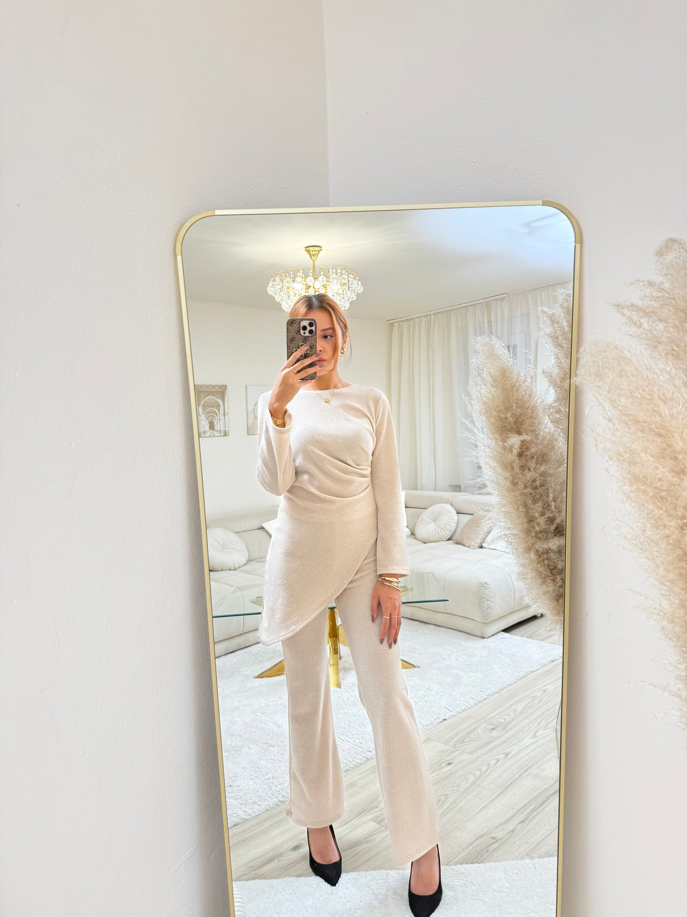„Dieses Set kombiniert einen modernen, asymmetrischen Schnitt mit einer figurschmeichelnden Silhouette. Es ist unglaublich bequem und lässt sich vielseitig stylen – ein echter Hingucker! – Laura M.“