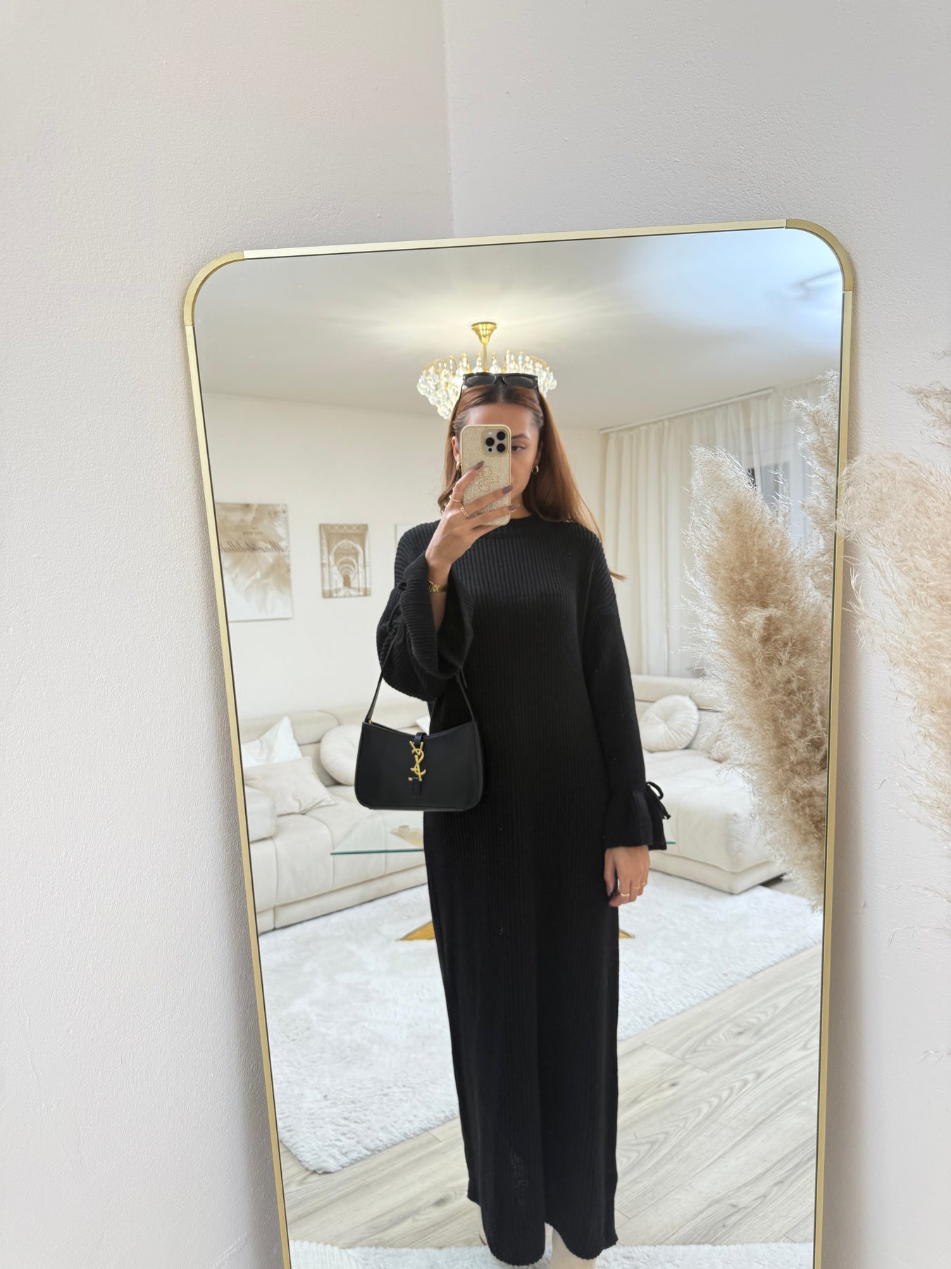 Unser Strick-Kleid mit Ballonärmeln wird in Einheitsgröße angeboten und ist so konzipiert, dass es sich flexibel an verschiedene Körperformen anpasst – für eine bequeme, aber dennoch figurbetonte Passform, die deinen Look perfekt abrundet.