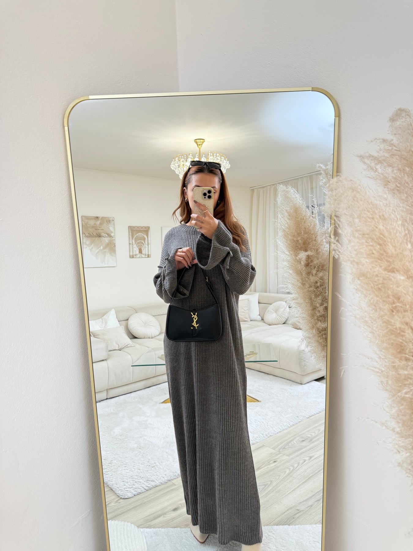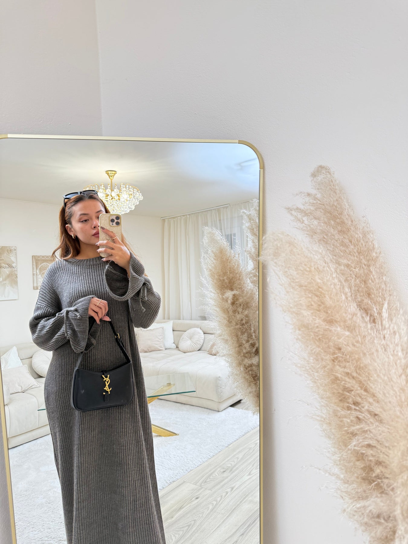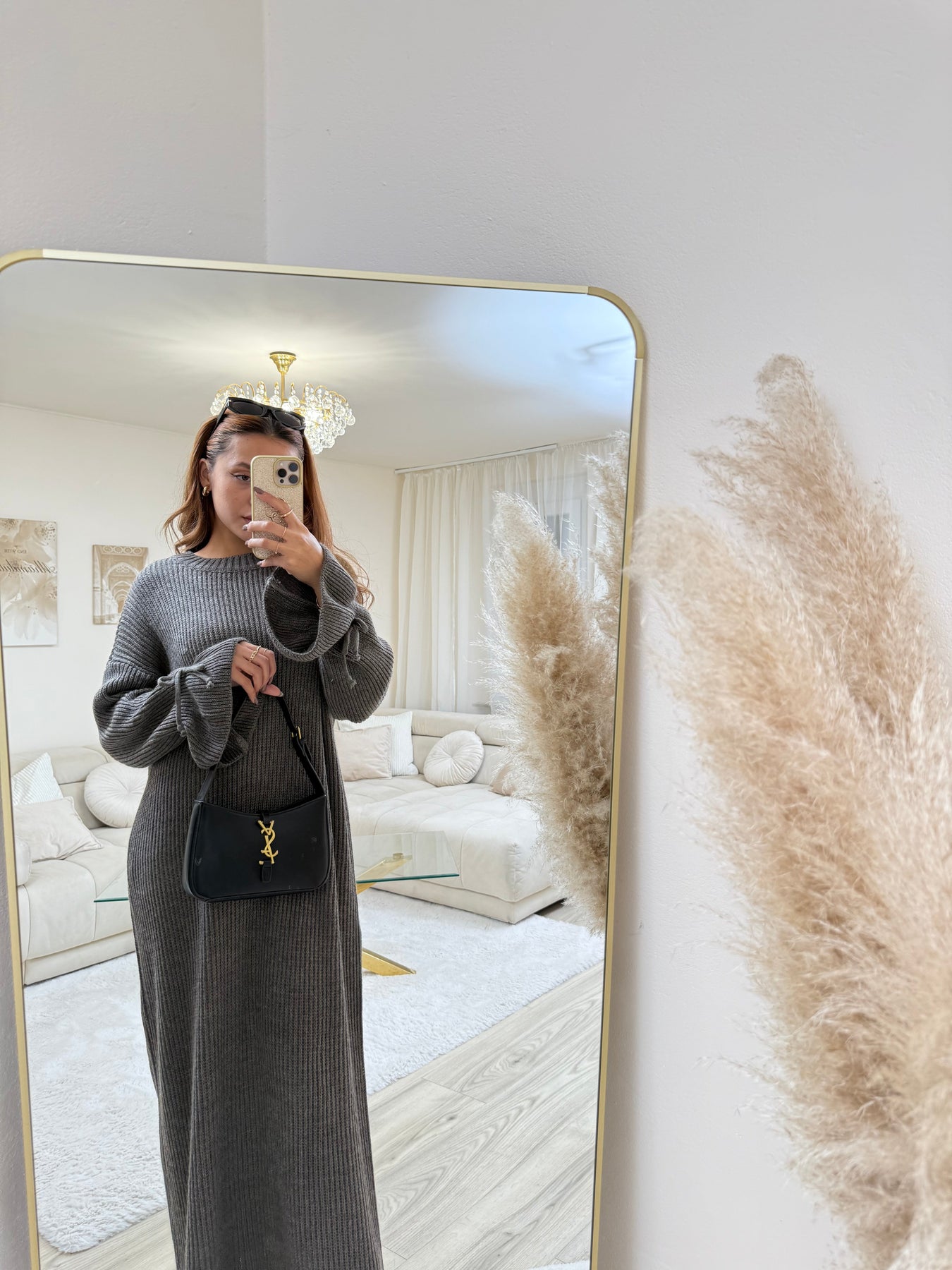 • Farben: Neutrale Töne wie Grau, Schwarz oder Beige harmonieren wunderbar mit dem weichen Grobstrick und lassen das Kleid zeitlos wirken.