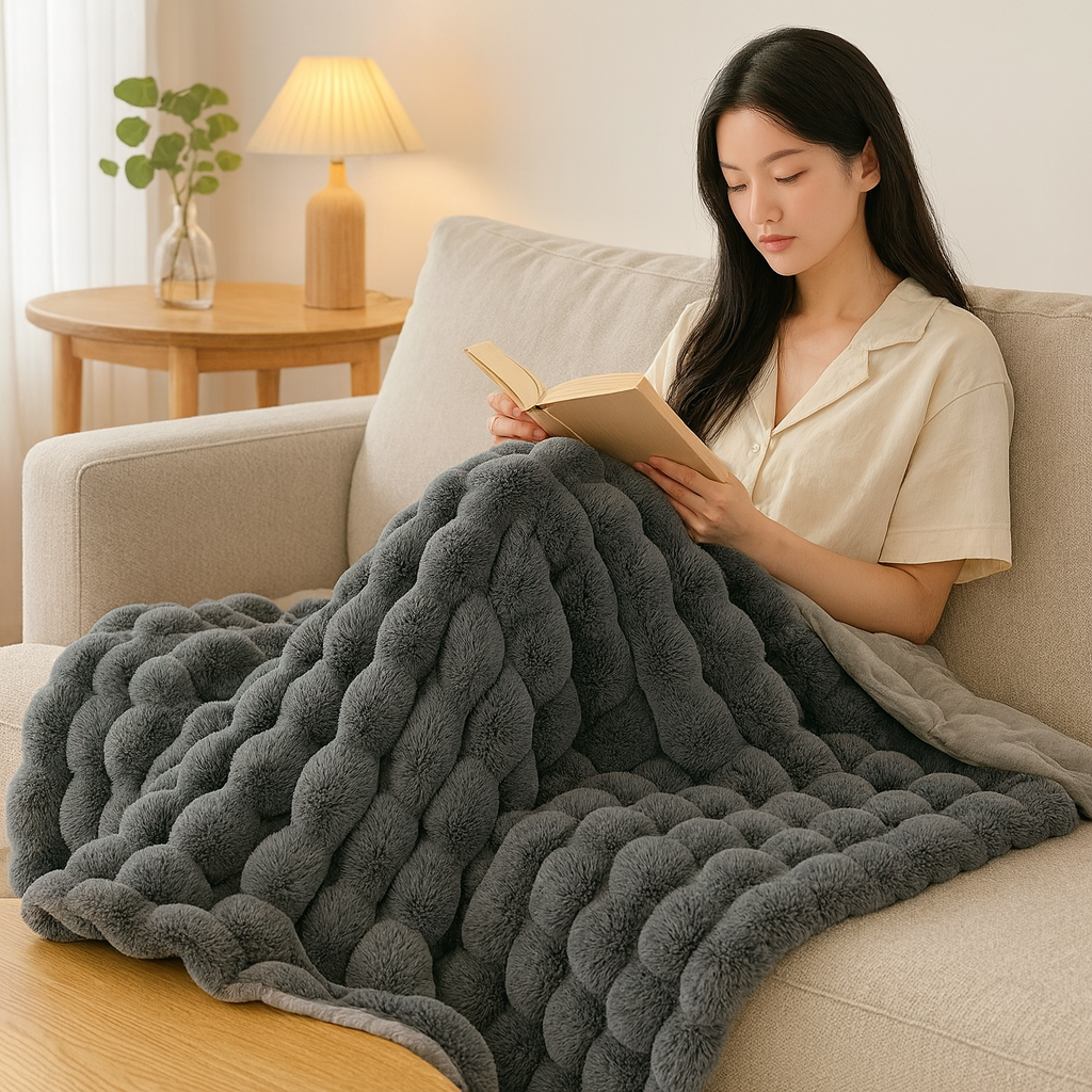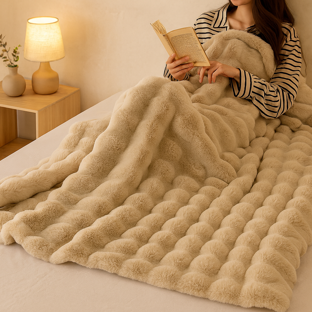 Dank ihres wendbaren Bubble-Fleece-Stils ist diese Decke funktional und dekorativ zugleich. Das dezente Vintage-Design macht sie zu einer perfekten Wahl für Einrichtung, Entspannung und Wohlfühlmomente.