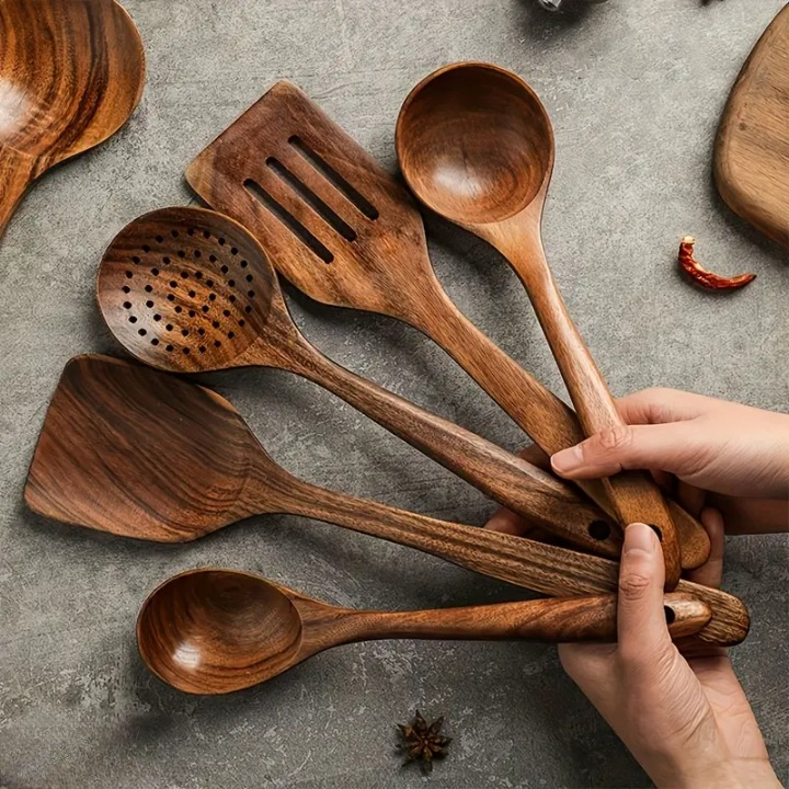 Tevara | 5-teiliges Küchenutensilien-Set aus Teakholz