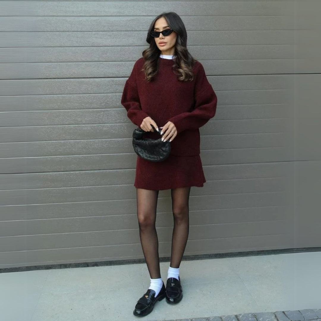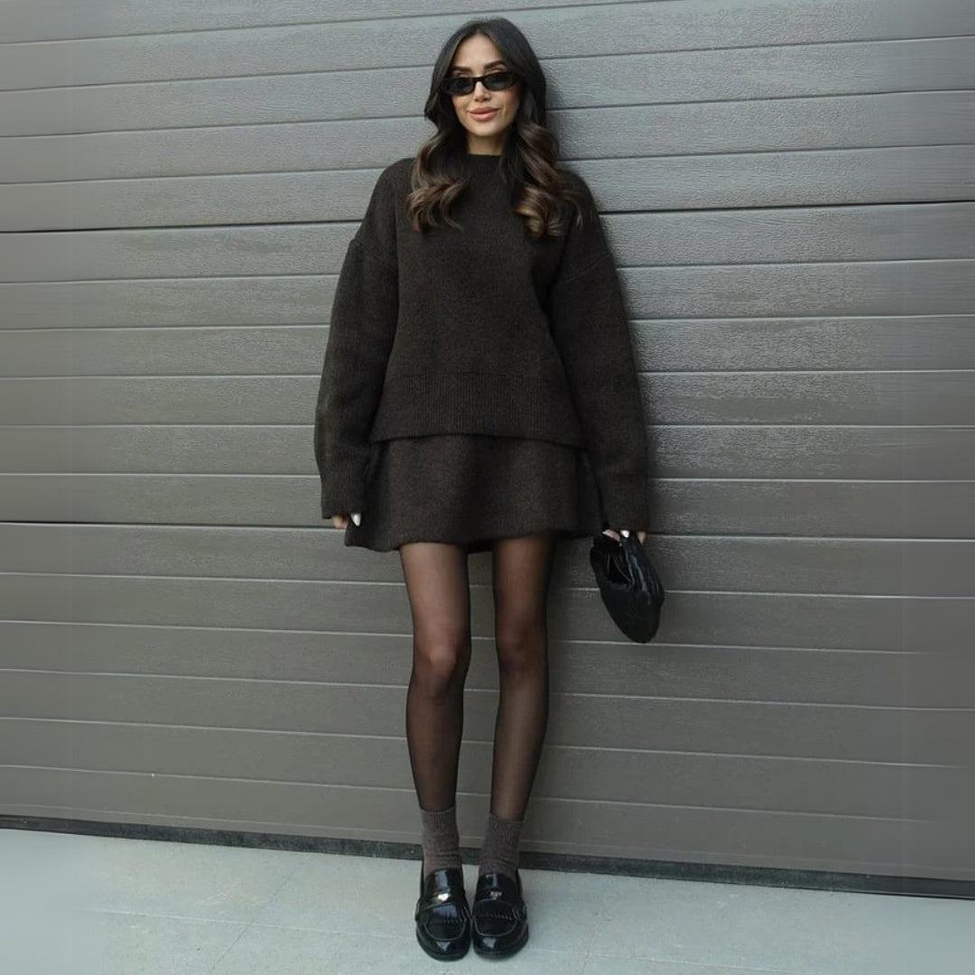 Das Übergroße Pullover Set ist die perfekte Kombination aus Stil und Komfort für die Herbstsaison. Dieses zweiteilige Set besteht aus einem übergroßen Pullover, der mit einem taillierten Rock kombiniert wird, und schafft so ein schickes und bequemes Outfit, das Sie den ganzen Tag über problemlos tragen können. Der übergroße Pullover bietet ultimativen Komfort, während der Rock einen femininen Akzent setzt. Ob zusammen getragen oder mit anderen Teilen kombiniert – dieses Set bietet unendlich viele Stylingmöglichkeiten.