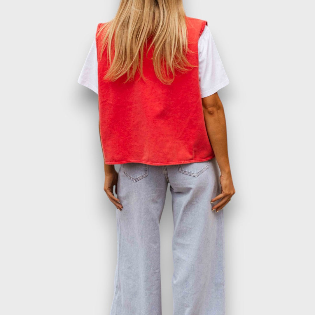 Veriane ist der Inbegriff sommerlicher Leichtigkeit mit einem Hauch Nostalgie. Die strukturierte Silhouette, die charmanten Knöpfe und der leicht verwaschene Look verleihen ihr eine entspannte Vintage-Note, die dennoch modern wirkt. Ob zur Denim, zu Shorts oder über einem luftigen Kleid – Veriane verleiht jedem Outfit einen Hauch Unabhängigkeit und kreativen Esprit.