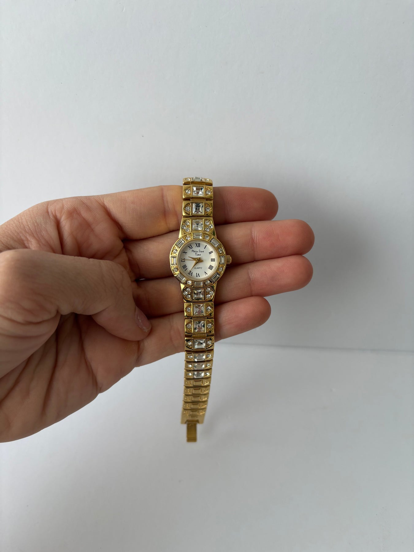 Entdecken Sie unsere exquisite Vintage Gold Diamant Damen Armbanduhr, ein wahres Schmuckstück für Ihr Handgelenk. Diese hochwertige Uhr vereint klassisches Design mit modernem Luxus und verleiht jedem Outfit einen Hauch von Glamour. Die funkelnden Diamanten und das edle Goldgehäuse machen diese Uhr zu einem zeitlosen Accessoire.