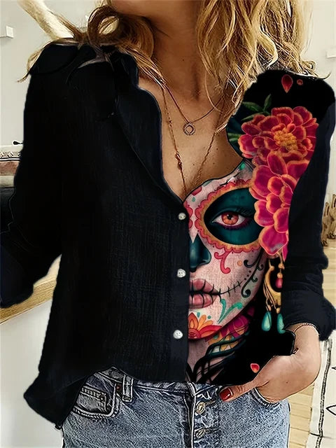 Schmeichelnde Passform: Mit ihrem perfekten Schnitt und dem einzigartigen Vintage-Print sorgt diese Bluse für ein selbstbewusstes, elegantes Auftreten – ein Must-have für jede modebewusste Frau