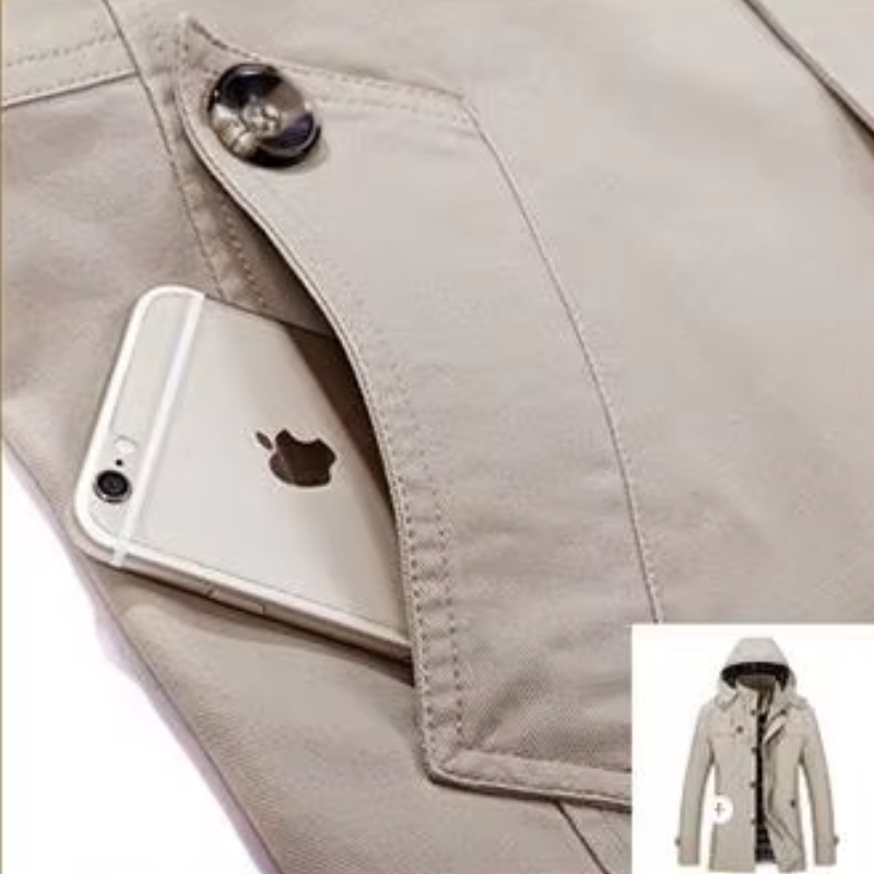 • Mit Kapuze: Die abnehmbare Kapuze bietet zusätzlichen Schutz vor Wind und Wetter und verleiht der Jacke einen vielseitigen Look.