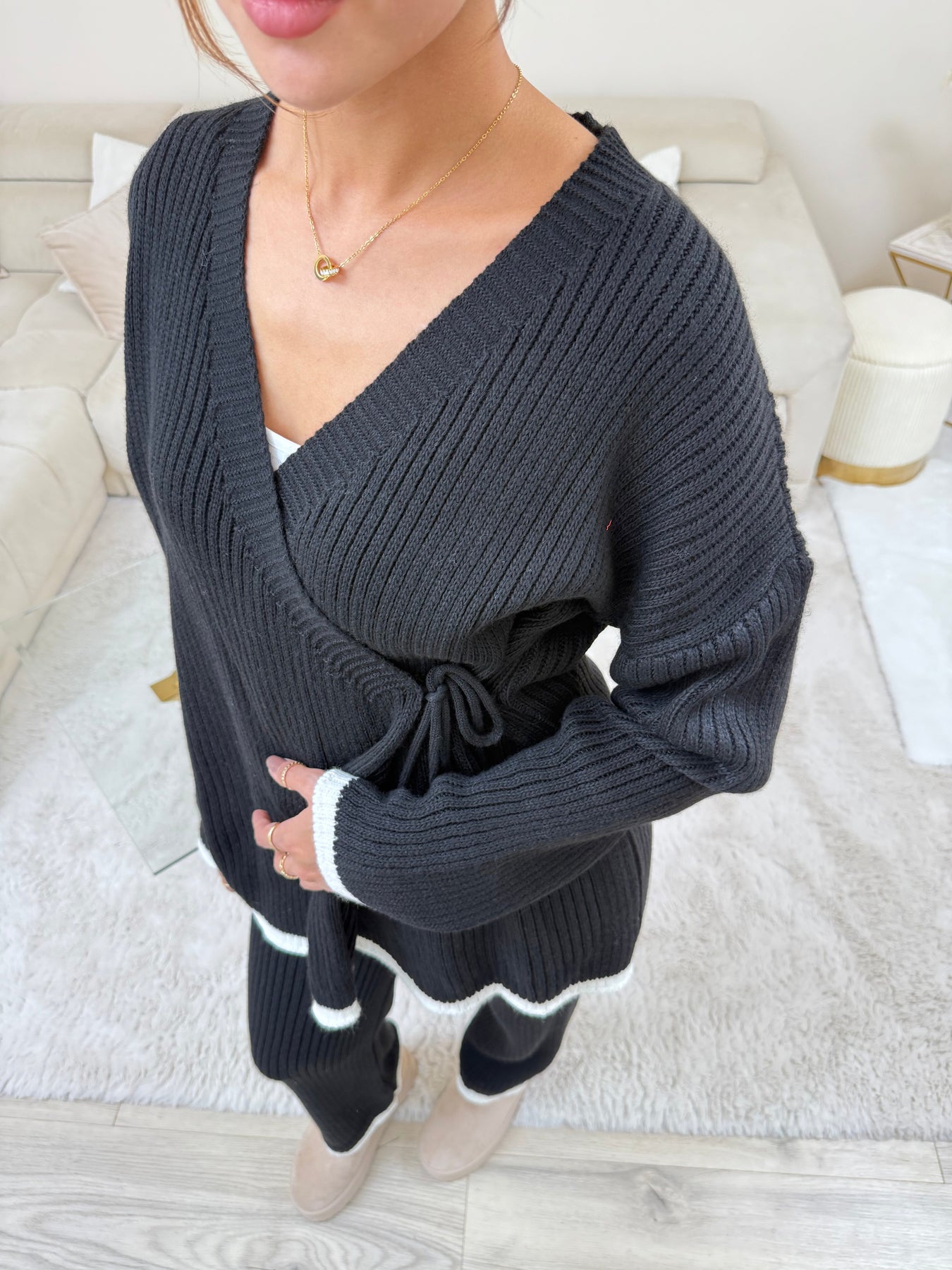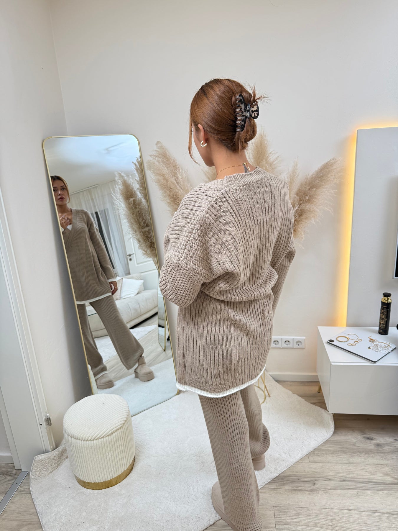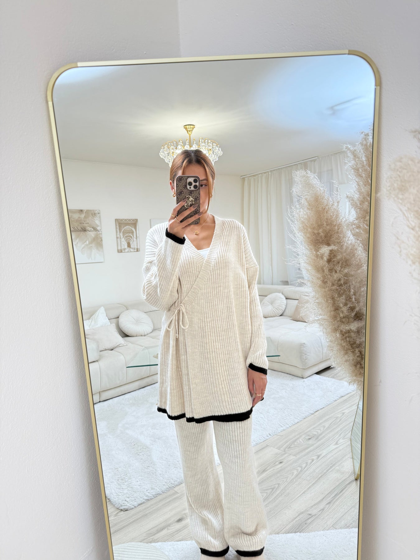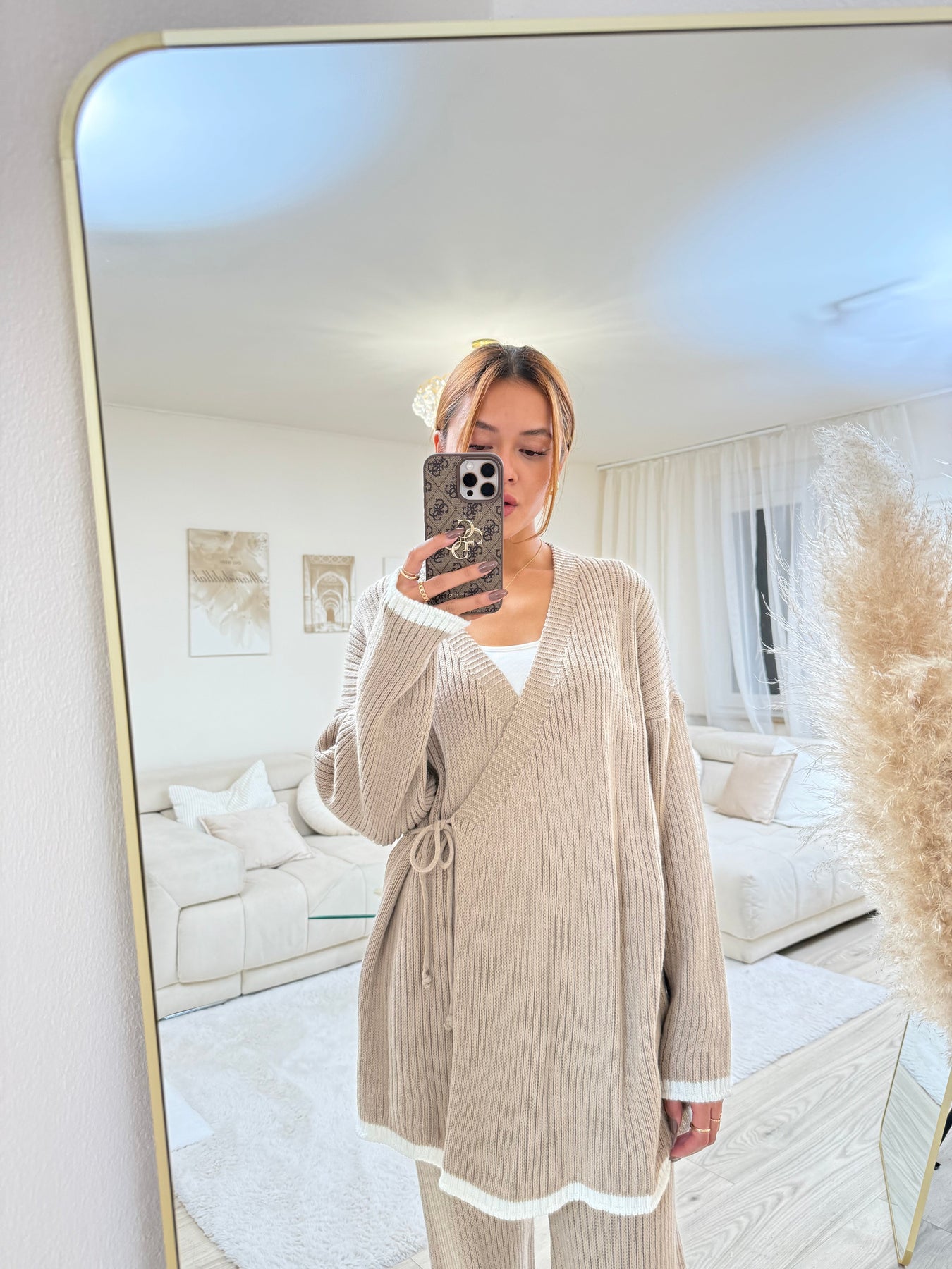 Super gemütlich. Aus weichem Grobstrick. 2-teiliges Set mit Wickel-Cardigan und Hose. Dieses Wohlfühl-Set im Cozy-Style ist perfekt für entspannte Tage. Das Set aus Wickel-Cardigan und Hose bietet maximalen Komfort und Wärme für kalte Tage. Material: 100 % Acryl