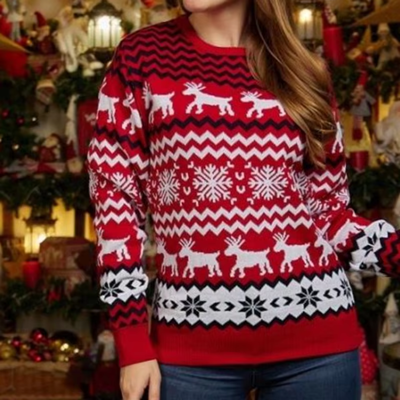 Wolkwär - Weihnachtspullover – Strick, Festlich, Mit Rentier- und Schneeflocken-Muster