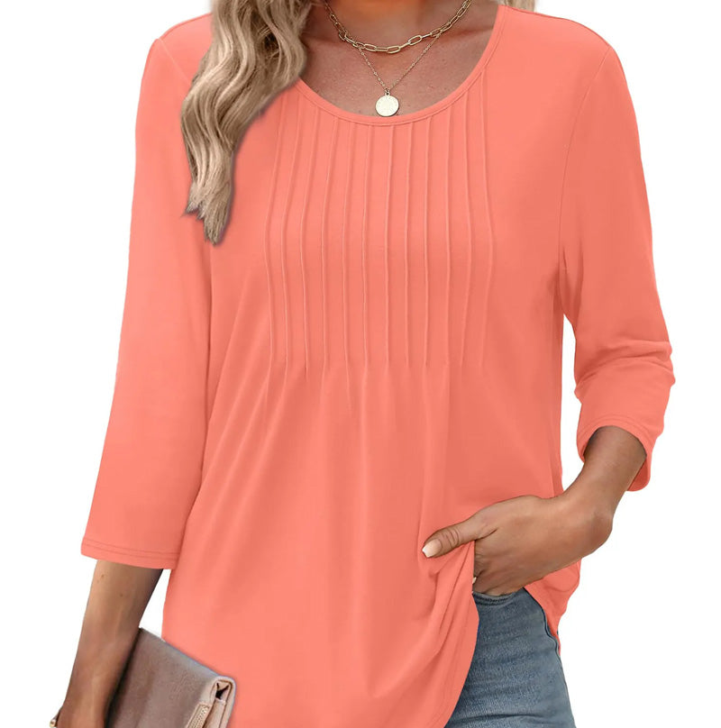 Yaretzi | Lös Passform Dünne Bluse mit Falten vorne und Rundhalsausschnitt