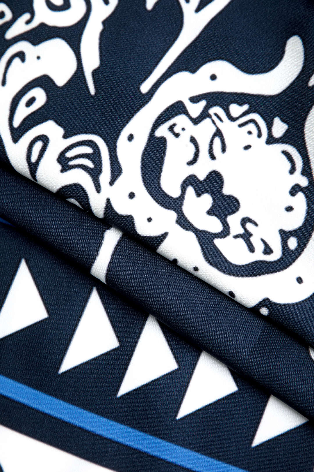 Das Zahara Boho-Zweiteiler-Set vereint lässige Eleganz mit einem Hauch von Ethno-Charme. Die locker geschnittene Bluse mit Knopfleiste und klassischem Kragen kann offen oder geknotet getragen werden, während die fließende Hose mit elastischem Bund für höchsten Tragekomfort sorgt. Das stilvolle Muster in Blau- und Cremetönen verleiht dem Set eine besondere Note und macht es perfekt für entspannte Sommerlooks, Urlaub oder stylische City-Outfits.