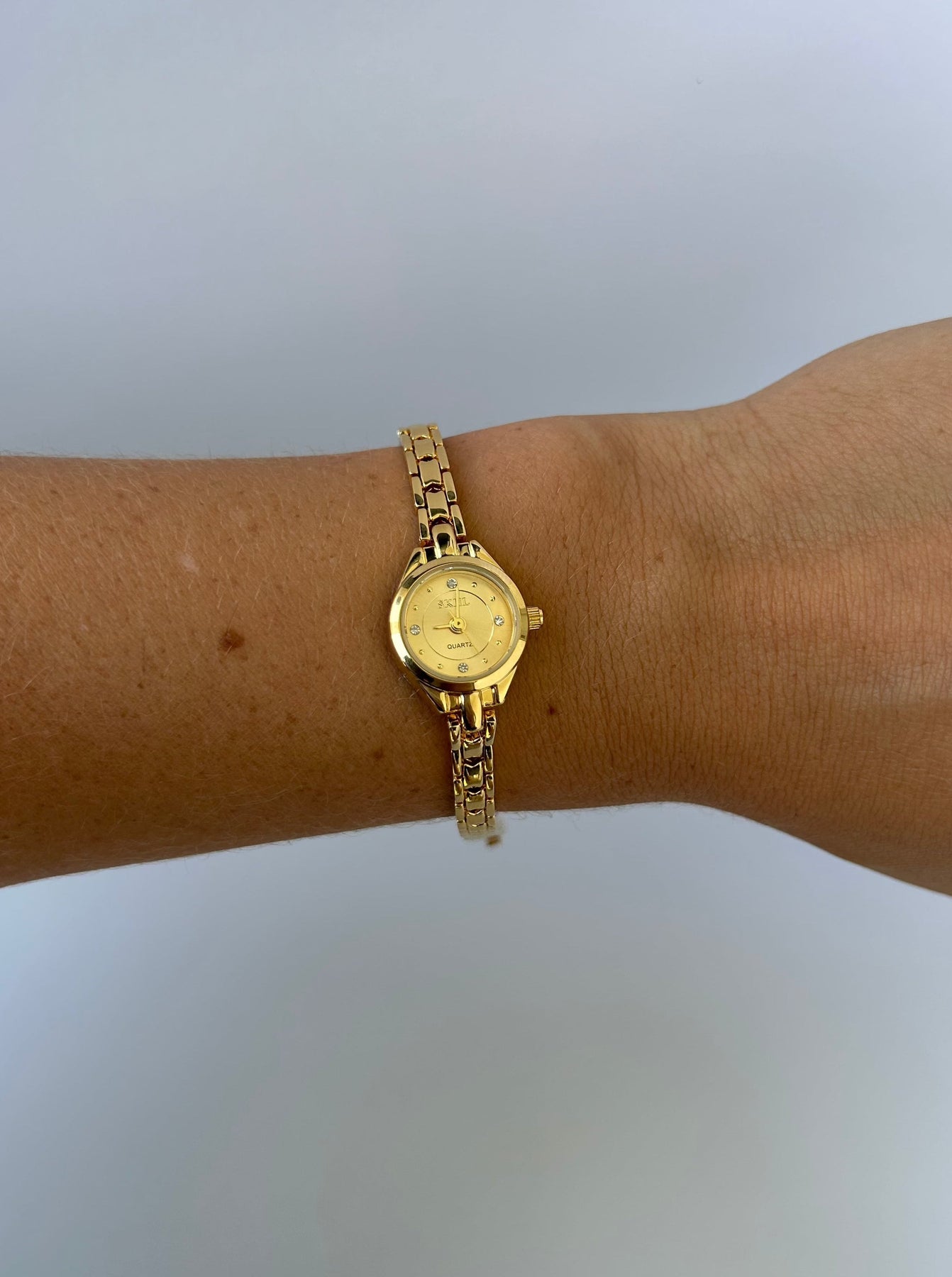 ✔️ Edles Design: Schmales Armband und feingliedriges Gehäuse aus hochwertigem, vergoldetem Edelstahl