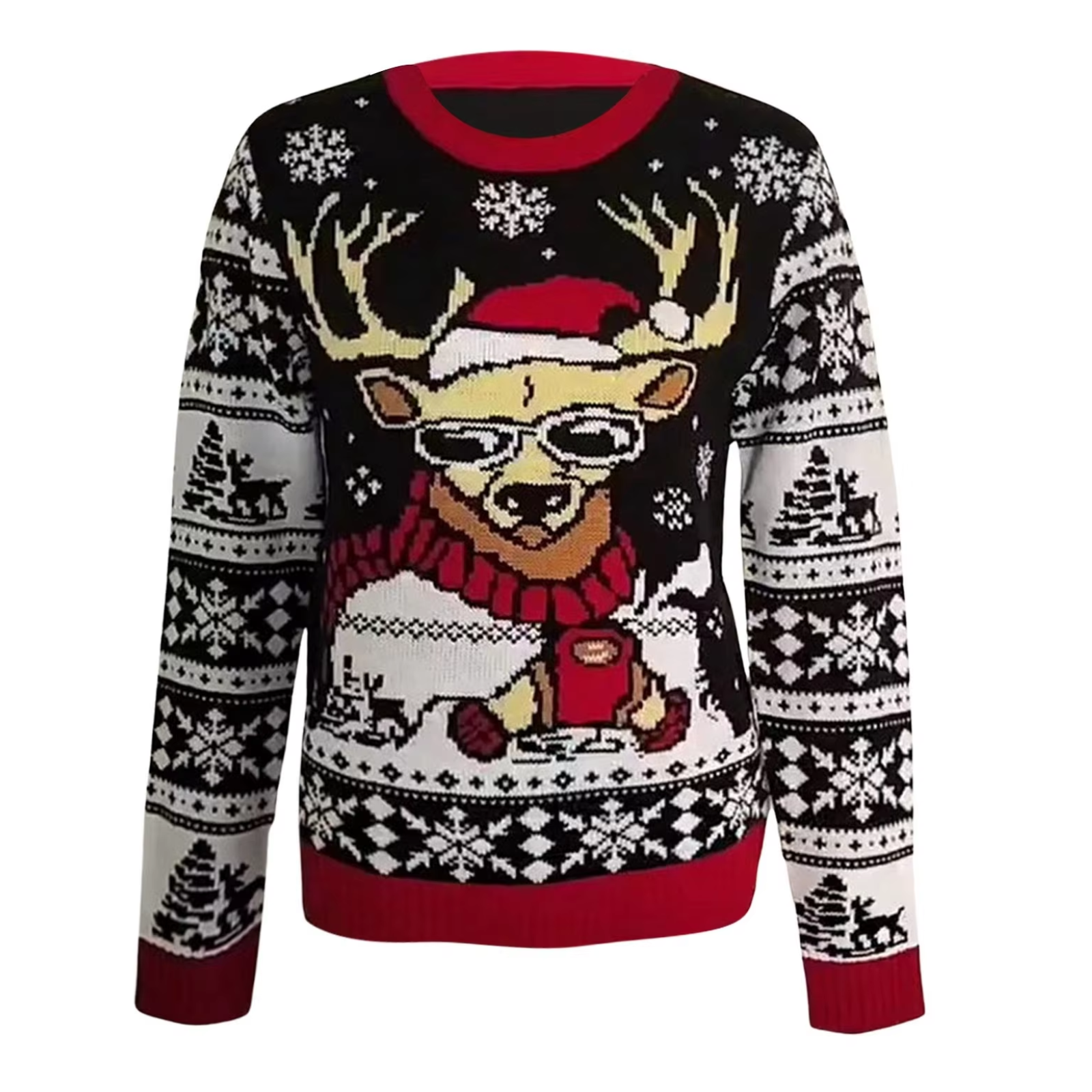 Zimtzau - Weihnachtspullover für Damen, Strickpullover mit lustigem Rentier-Design