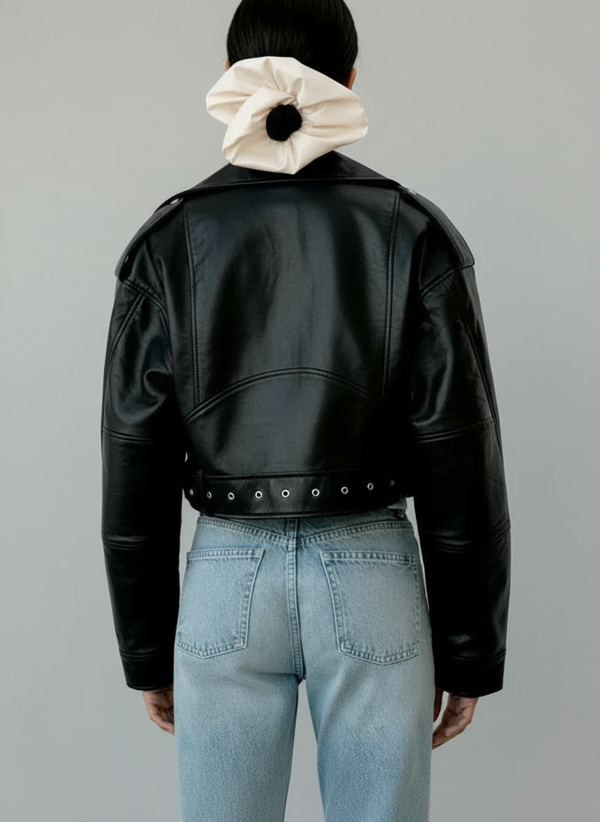 Zira | Damen Lederjacke Kurz Biker Stil Mit Gürtel