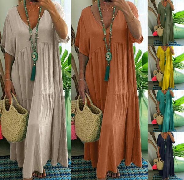 Ziva | Lässiges langes Kleid mit kurzen Ärmeln für Damen